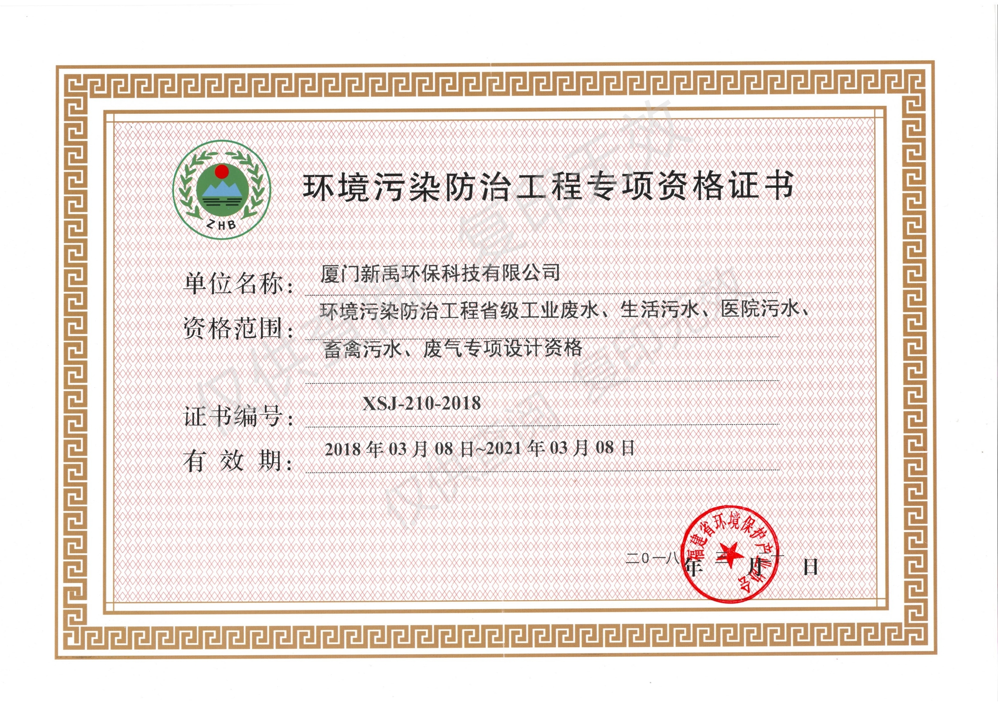 環(huán)境污染防治工程專項(xiàng)資格證書