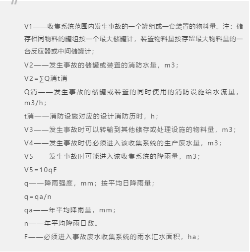 四、《化工建設(shè)項目環(huán)境保護設(shè)計規(guī)范》(GB 50483-2019),化工企業(yè)應(yīng)急事故廢水池有效容積計算公式如下: